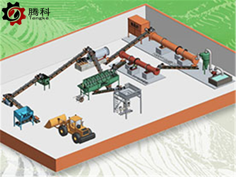 高配置:鸡粪脱水机、发酵翻堆机、上料仓、物料粉碎机、卧式搅拌机、造粒机、烘干机、冷却机、滚筒筛分机、包膜机、包装设备、皮带输送机等。